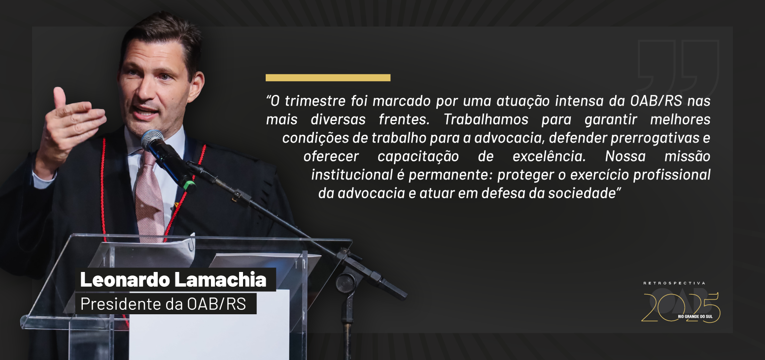 O segundo trimestre de 2025 foi de protagonismo para a OAB/RS. A entidade fortaleceu sua presença institucional com vitórias jurídicas relevantes, avanços na defesa das prerrogativas e ações de valorização da advocacia. No período, a Ordem gaúcha também celebrou 93 anos de história, promoveu eventos de grande impacto e reforçou seu compromisso com a cidadania e os direitos fundamentais.